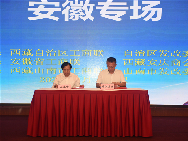 会上,西藏自治区发改委、山南市介绍了当地经济社会发展情况和招商引资政策,并进行了项目推介。西藏安庆商会会员企业——锦江集团,与山南市签订了招商项目。