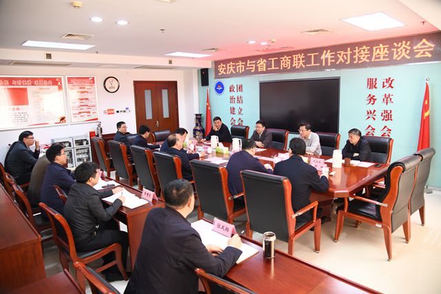4月15日,市委书记张祥安、市政府市长张君毅一行赴安徽省工商联对接工作。市领导吕栋、徐雄、杨林随同。省委统战部副部长、省工商联党组书记缪学刚,省工商联副主席刘明平、施广勇、司应武等参加座谈。双方就支持安庆市创优营商环境、开展“双招双引”、加强异地商会建设、推进“万企兴万村”行动等进行深入交流。