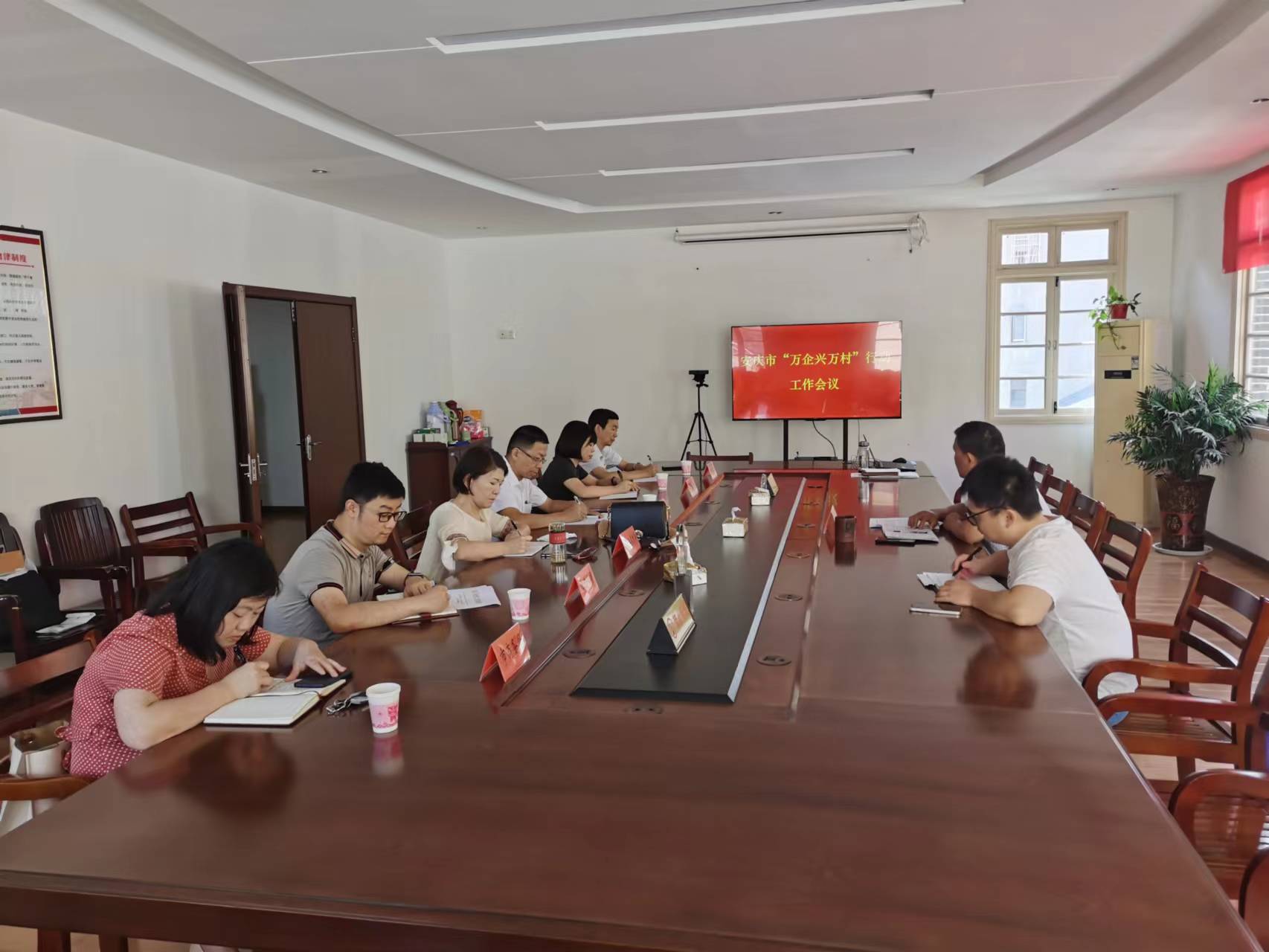 会上讨论了《安庆市“万企兴万村”行动工作考核办法(征求意见稿)》,对“万企兴万村”行动台账管理系统录入工作进行了业务培训,并就下一阶段工作进行安排部署。