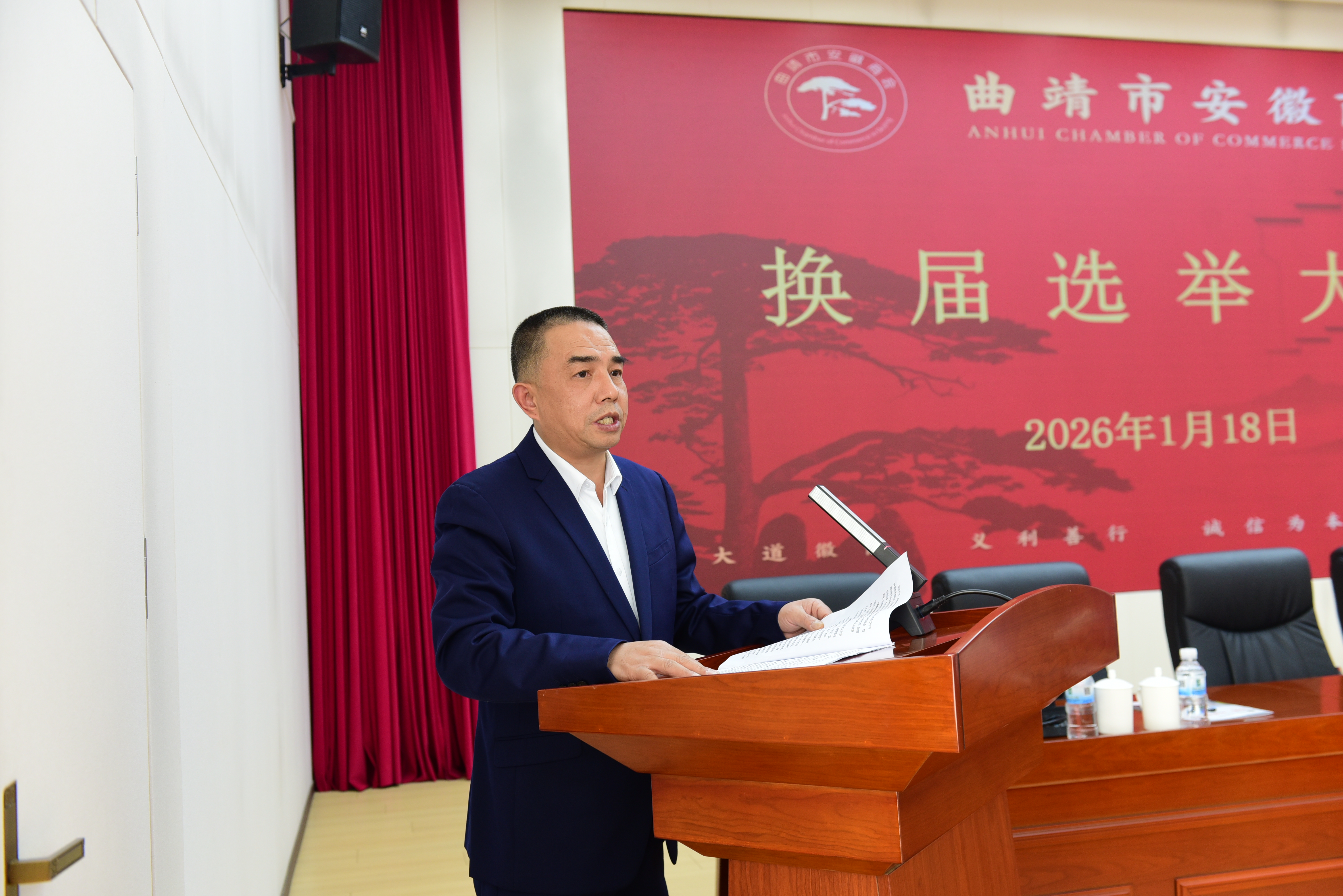 1 月 18 日,曲靖市安徽商会四届一次会员大会暨换届大会在曲靖市华泰锦安国际大酒店顺利举行。安徽省工商联二级巡视员葛文胜,曲靖市政协副主席、市工商联主席余志柏,安庆市委统战部副部长、市工商联党组书记曹金栋等领导出席,安徽兄弟商会代表及商会会员共 300余人参会。