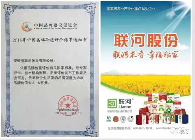 安徽省联河米业是国家及农业产业化龙头企业。 “三流企业做产品,二流企业做品牌,一流企业做标准。”近年来,公司转型升级不止步,不断提高自主创新能力,重视品牌创建,注重自主知识产权的保护,企业自主创新品牌建设不断传来喜讯。