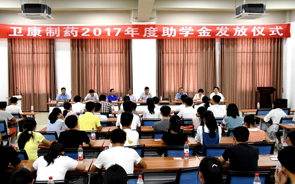 8月25日,潜山县工商联副主席企业海南卫康制药(潜山)有限公司举行2017年度助学金发放仪式,30万元助学基金助80名优秀贫困学子圆梦大学。副县长薛建中出席仪式并讲话,县工商联、关工委、总工会、扶贫办、卫康制药负责同志参加仪式。