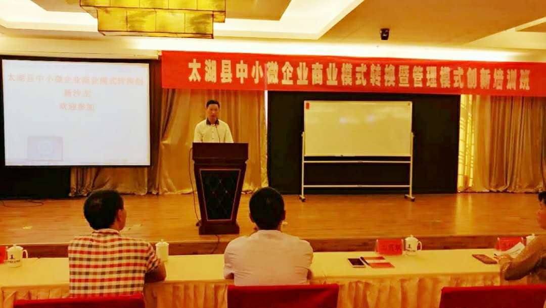 9月12日下午,太湖县中小微企业商业模式转换暨管理模式创新培训会在皖府国际大酒店顺利举行。会议旨在切实帮助县非公企业转变商业思维,调整优化产业结构,实现产业模式转型升级。县政府副县长李传萍莅临指导并讲话。县花管处、经信委、市场监督管理局、商务局、供销社等县直单位负责同志出席会议。县委统战部副部长、工商联党组书记、主席童元平主持会议并致开幕辞。上海模世能公司受邀为会议做培训讲座。