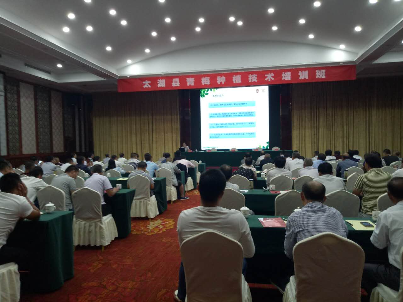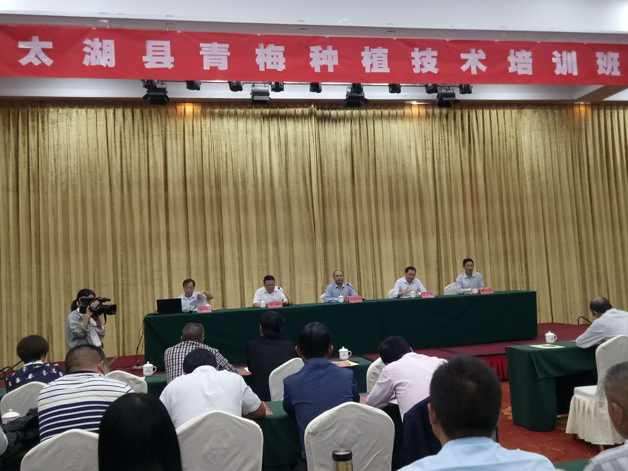 9月22日上午,太湖县青梅技术培训班在县汇通宾馆举办。县政协副主席石金印主持会议并讲话。繁昌县工商联副主席姚有敏、县林业局局长王彬、县委统战部副部长、工商联主席童元平参加会议,县林业局有关职能科室、县有关乡镇分管负责同志、林业站站长及部分农业专业合作社、造林大户100余人参加培训。会议听取了溜溜果园集团公司派出的专家团队关于青梅种植的培训讲解,学习了青梅种植技术,为我县青梅种植 和基地建设打下了理论基础。