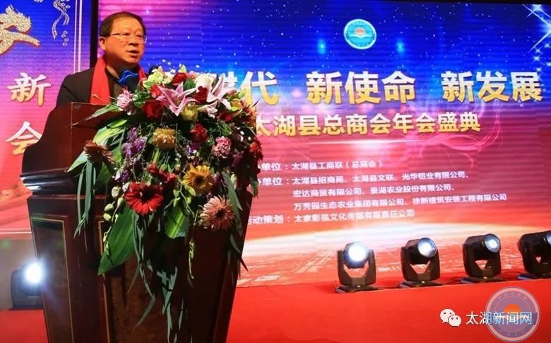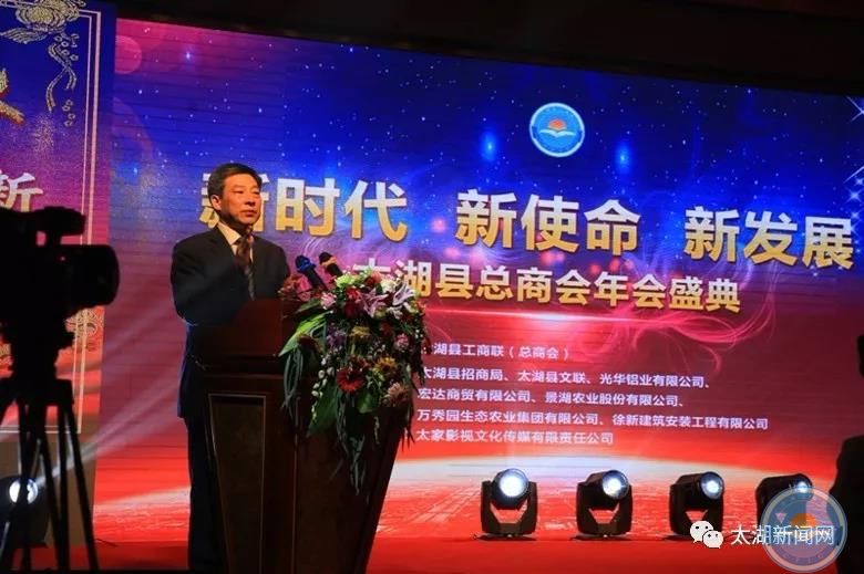 县长朱小兵发表了热情洋溢的致辞,向所有关心、支持太湖建设与发展的各位领导、各位企业家和乡贤表示衷心的感谢!向所有在外工作的老乡致以诚挚的问候和美好的祝愿!朱小兵回顾了过去一年来太湖政治经济社会各项事业发展所取得的显著成绩,展望了2018年“1142”的总体工作部署,并提出了三点要求。一是希望县工商联(总商会)尽职尽责,在服务全县经济社会发展上有新提高。要不断加强基层商会和行业协会建设,充分调动全县非公有制经济人士的积极性,不断完善政策信息、经贸联络、政企对话等服务平台,引导广大非公有制企业认清形势、坚定信心、抢抓机遇、乘势而上,努力推动全县非公有制经济发展再上新水平。二是希望各位企业家创新创效,在促进全县经济社会发展上有新突破。广大企业家要勇当转型升级的主力军,争做跨越发展的排头兵,以做大做强企业为目标,抢抓机遇,走自主创新之路,不断增强企业综合竞争力。同时,要充分发挥交流广泛、信息汇集的优势,加大以商招商力度,吸引更多的企业来县投资发展,实现招商引资新突破。三是希望各位乡贤、来宾同心同向,在加快全县经济社会发展上有新建树。尤其是在招商引资方面,常怀感恩心、常念故乡情、常思家乡美,多为太湖宣传推介、牵线搭桥,多为太湖联系一批匹配度高、投资规模大、发展前景好、带动能力强的优质项目,为加快建设“实力太湖、魅力太湖、活力太湖”添砖加瓦!