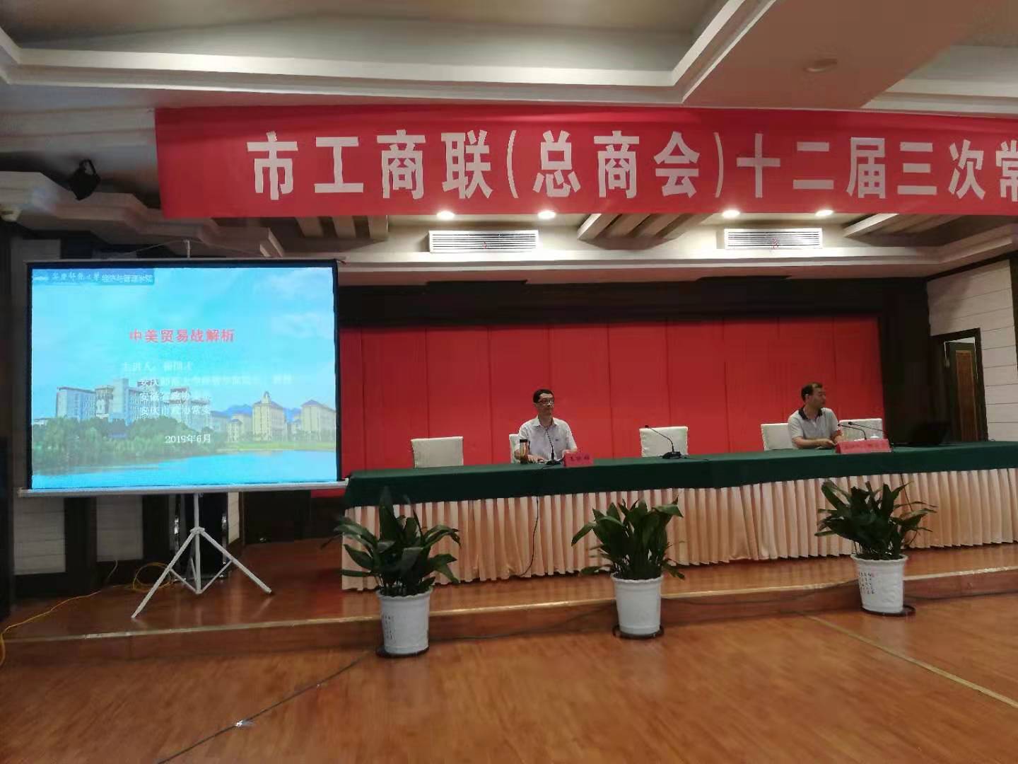 会议还书面传达了《中共安庆市委 安庆市人民政府关于大力促进民营经济发展的实施意见》,邀请安庆师范大学经济与管理学院院长杨国才教授作《当前国内外经济形势分析》专题讲座。