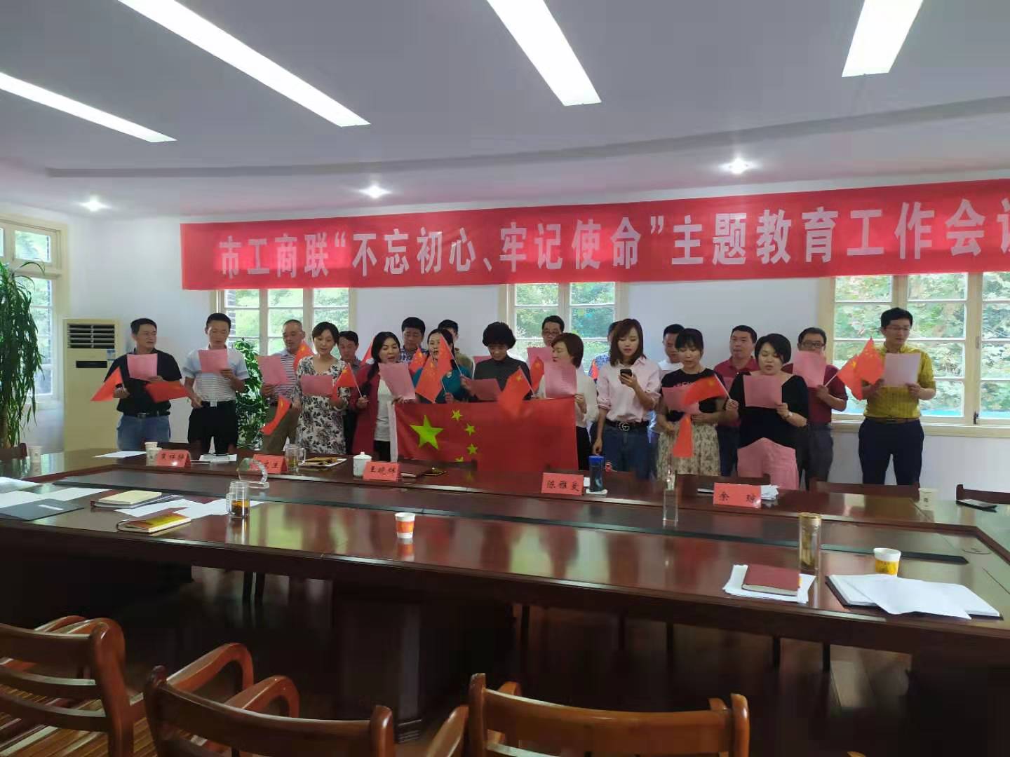 国庆期间,市工商联组织开展庆祝新中国成立70周年系列活动,激励和抒发非公有制经济人士爱国爱党热情,坚定走中国特色社会主义的理想信念和决心。节前,市工商联就在在机关办公楼上升起鲜艳的五星红旗、楼前悬挂大红灯笼和庆祝国庆横幅,并向各直属商协会发出组织会员开展纪念庆祝活动的通知;9月28日一早工商联机关全体党员到市烈士陵园重温入党誓词,缅怀追思先烈革命事迹和建国伟业;9月30日下午,市工商联会同新生代企业家商会召开“不忘初心、牢记使命”主题教育形势报告会暨庆祝“新中国成立70周年”座谈会,市工商联主席王晓辉主持会议,市委统战部副部长、工商联党组书记陈雅爱作形势报告,回顾建国70年来国家经济社会建设取得的非凡成就,并勉励年轻一代民营企业代表人士要做爱国爱党、创新创业的典范,工商联机关干部职工、机关支部党员和新生代企业家会员一起热烈座谈发言,合唱《歌唱祖国》,共贺新中国70华诞。各直属商协会也纷纷在办公场所悬挂国旗,开展各项庆祝活动,市五金机电机械商会、市中小企业促进会举办“迎国庆、话创业、促发展”交流会,邀请企业管理专家、金融和法律专业人士一起畅谈新形式下民营企业依法依规转型发展话题;市新生代企业家商会党支部召开学习会,学习习近平总书记在国庆70周年大会上的重要讲话;市宜商电子商务协会预备党员看望祖国功臣程南松老人;“十一”长假期间,工商联领导和干部职工一起坚持值班值守,多个商会工作人员在国庆期间放弃休息,汇编“四好商会” 创建资料,表示要以实际行动庆祝伟大祖国生日。