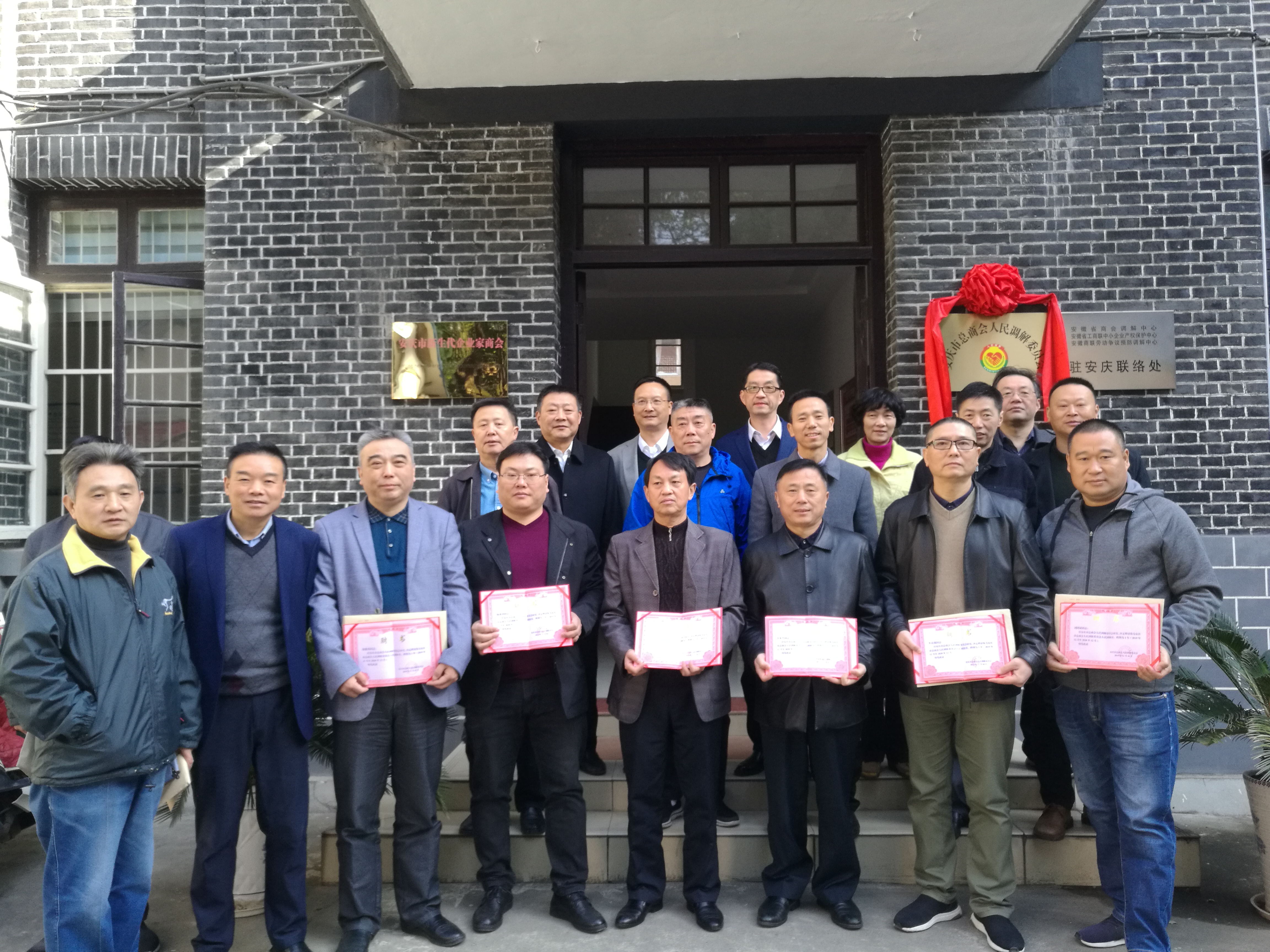 2019年11月20日上午,安庆市总商会人民调解委员会第一次会议在市工商联召开。市司法局党组书记、局长罗光彪,市工商联(总商会)主席(会长)王晓辉,市委统战部副部长、市工商联党组书记陈雅爱,市中级人民法院专职审委路昌其出席会议并为安庆市总商会人民调解委员会揭牌。