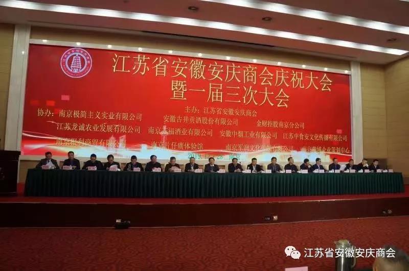 2019年12月28日上午,江苏省安徽安庆商会召开庆祝大会暨一届三次会议。安庆市政协主席章松,市人大副主任刘飞跃,市工商联主席王晓辉,市政协秘书长张翼,市招商中心主任汪久清,市工商联副主席王文生、余琼等出席会议。江苏省内有关领导、江苏省安徽商会等省市县兄弟商会领导和代表参加会议。