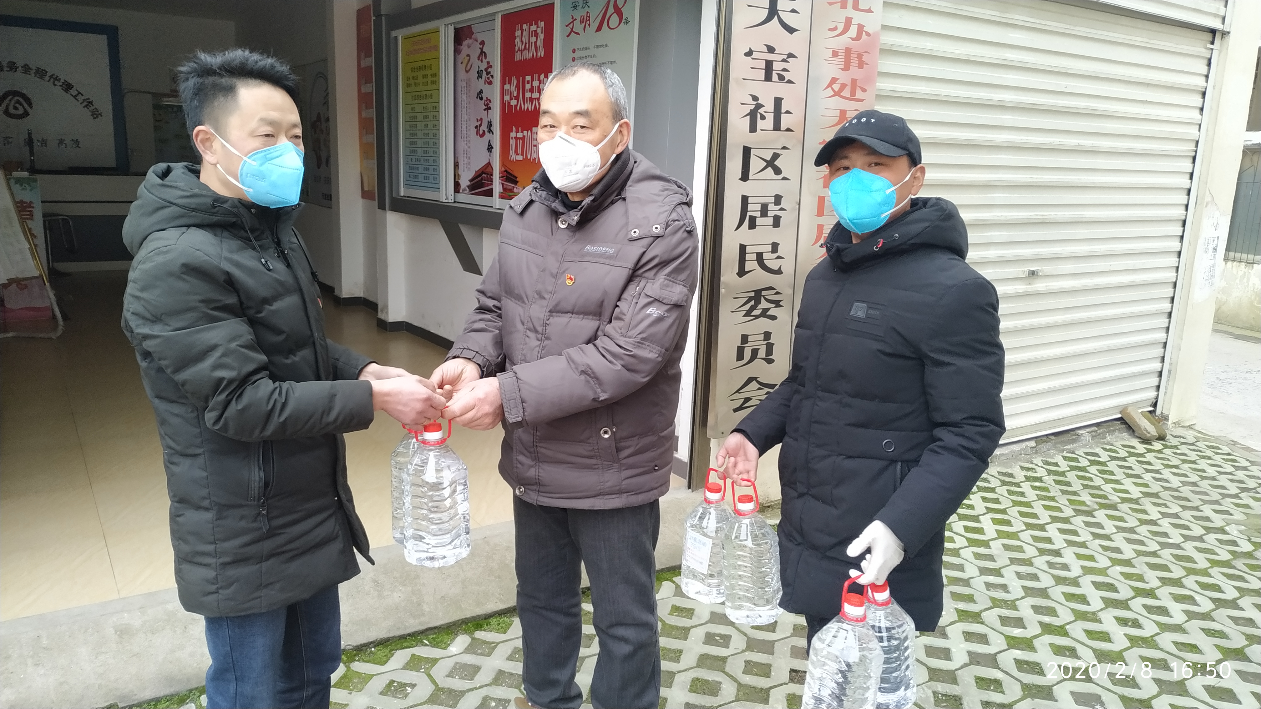 当天下午,两顶帐篷,30斤酒精,160斤84消毒液的爱心捐赠物资被送到天宝社区门口,市工商联领导表示:“在抗击疫情的关键时期,作为天宝社区的疫情防控下沉包保单位,为疫情防控尽一份绵薄之力也是我们的责任,天宝社区面积大、人口多,防控压力大,但是只要我们同心协力,一定能打赢这场疫情防控阻击战。”天宝社区党委书记曹达圣表示衷心的感谢,送来的物资将会第一时间送到防控疫情的一线工作人员的手中。