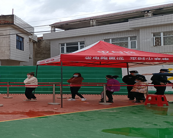 3月23日,宿松县城区开展第二轮核酸检测,防疫工作人员冲锋在第一线。当天,由于大多数是露天采样点,工作人员登记、采样时日光照射格外刺眼。帐篷成为一线防疫人员迫切需要的基础物资之一。