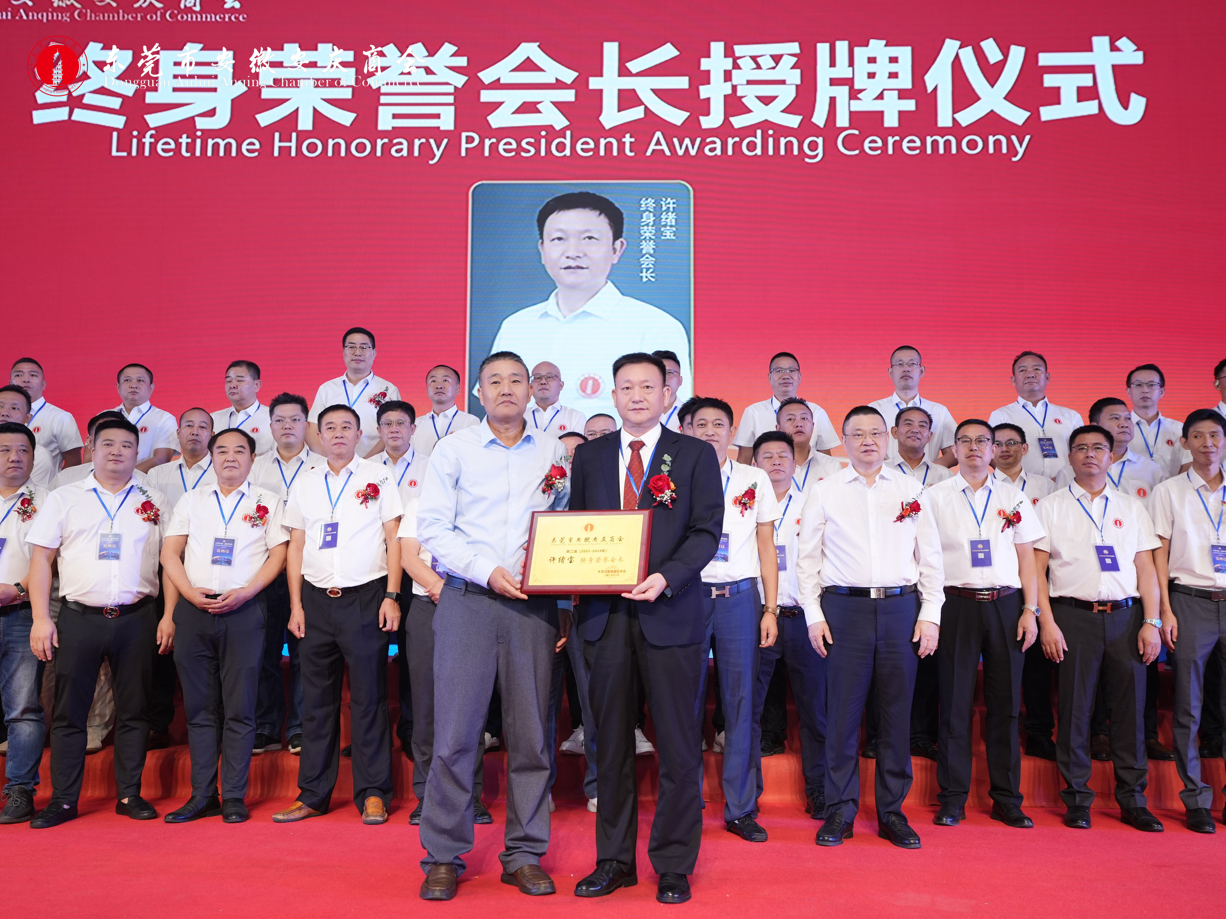大会举行了庄重的会旗交接仪式,并对新一届理监事会成员进行授牌。吴志峰副市长为新任会长吴少有授牌,余琼副主席为终生荣誉会长许绪宝授牌,标志着商会正式开启新一届任期。